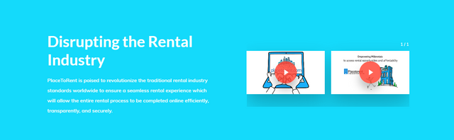 PlaceToRent is a decentralized peer-to-peer (P2P) global platform in the space of both long and shortterm residential and commercial rentals, such as homes, apartments, office, retail, and industrial space. We anticipate capturing real estate rental markets worldwide. While the costs and specifics of property renting/leasing may vary across the globe, both domestic and international market participants experience similar problems in the traditional process. They include such issues as inefficient property search process due to fragmented listings data; outdated rental platforms; non-transparent rental experiences; high commission fees; exclusion from the rental market due the lack of credit or work history for low income or young households, etc. In light of rapid advances in technology fueled by ubiquitous broadband internet access, the reliability of data centers, and improved software development tools, there has emerged an urgent need to revolutionize the rental process by providing a solution powered by blockchain technology that will be efficient, beneficial, and inclusive for all market participants including tenants and landlords worldwide. Until recently, blockchain (a digital ledger in which transactions are recorded chronologically and publicly) was most commonly referred to as the technology powering cryptocurrencies like Bitcoin. However, rental industry participants now realize that blockchain based smart contracts will play a much larger role in the rental market, potentially transforming property-related transactions including renting/leasing, management and rent/bill payments by means of utility tokens. This is the niche that PlaceToRent has identified and will seek to fill and dominate in the near future.