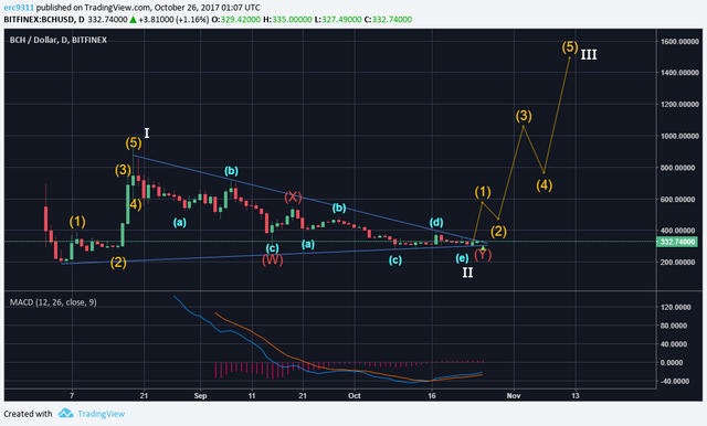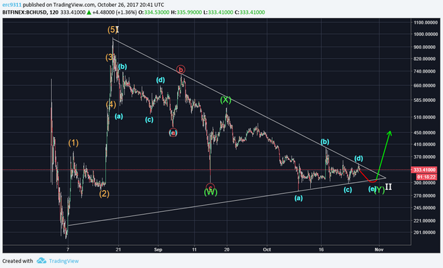 Yesterday i drew a long term triangle for Bitcoin Cash set to bust any minute from now. I said that the resistance must have been breached with an impulse, a five wave impulse.