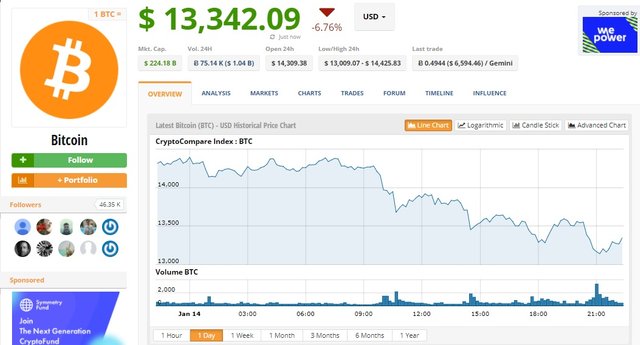 After touching 14500 levels BTC moving to lower levels 12500 and now trading at 13342.