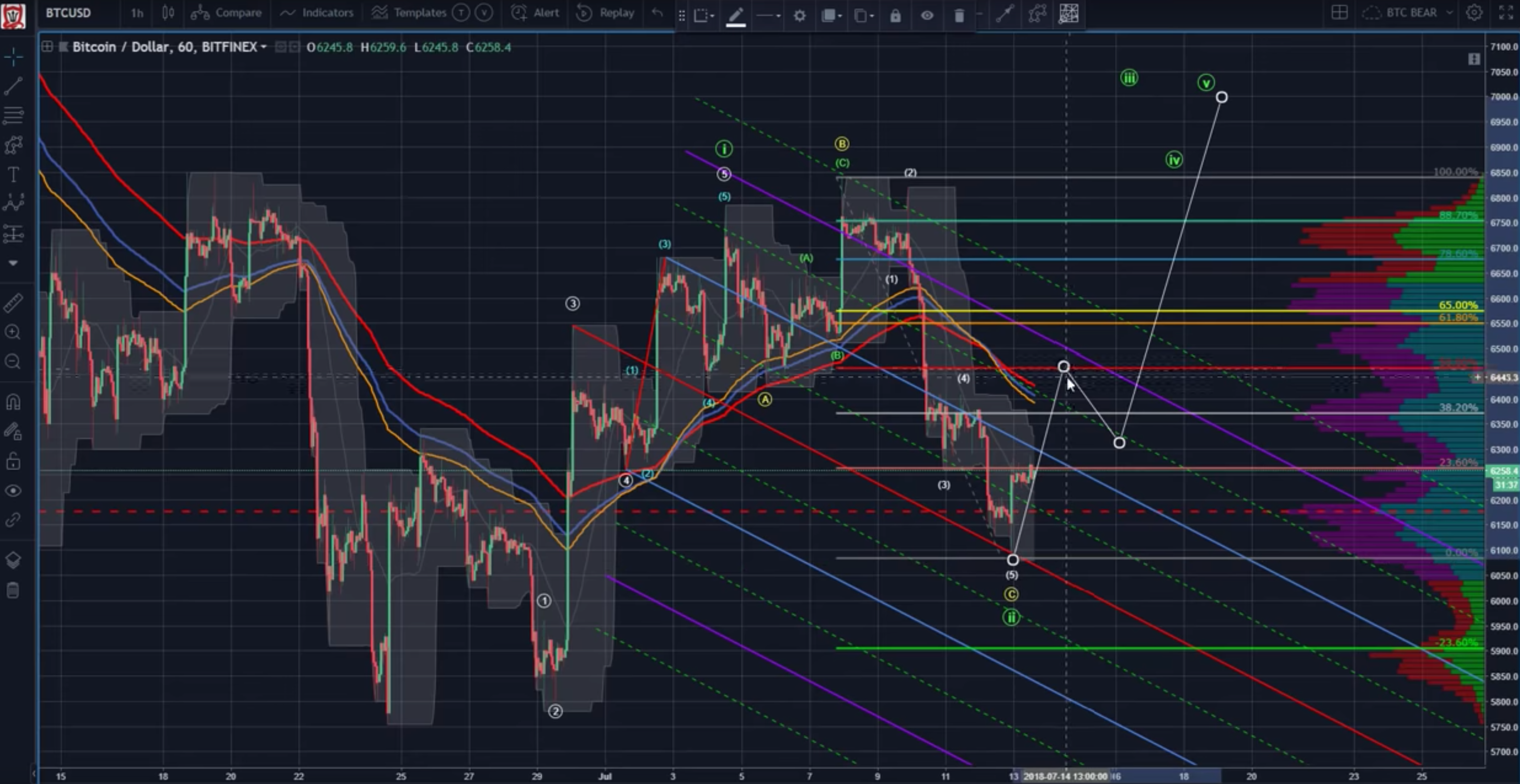 The bearish view could be that we go up to the 0.5 fib at 6'450. There we get turned around.