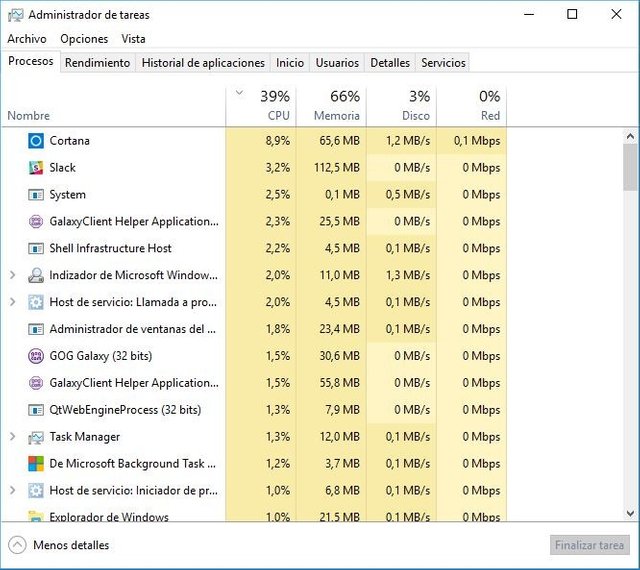 As we have already mentioned, in the bitcoins mineo "part of the resources of your computer is eaten" in exchange for a part of the coin without an owner that is created every 10 minutes. To have a greater certainty that, indeed, our computer hosts a bitcoin miner we have several options. First of all, a "manual option", which involves going to the Task Manager and checking how the system resources are developed.