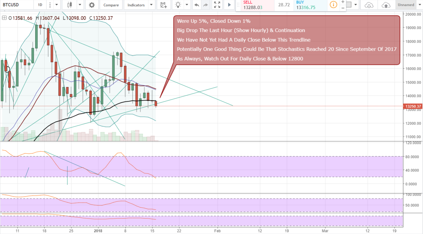 Monday was looking fine all day, and Bitcoin was up 5% at most but then all of a sudden it dropped during the last hour of trading. This could be negative, but lets have a look at the daily chart here: