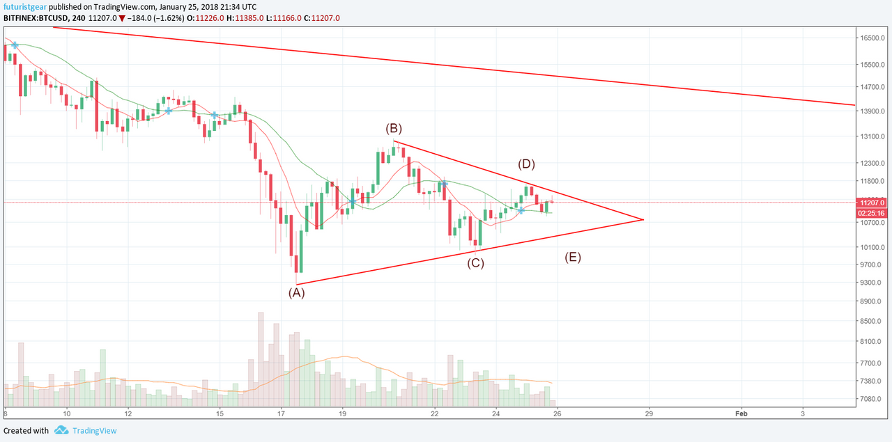 I posted the other day that I thought the Bitcoin correction was coming to an end, and if there's one thing that will either confirm or deny that; it's a triangle pattern.