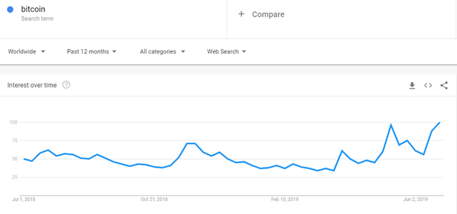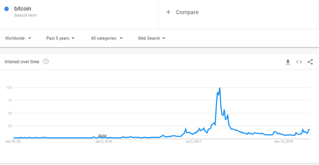 The google trend chart below shows bitcoin over the last year.