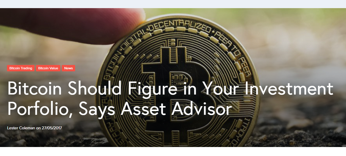 Bitcoin Getting Mainstream: Bitcoin Should Figure in Your Investment Porfolio, Says Asset Advisor - Cryptocoinsnews.com