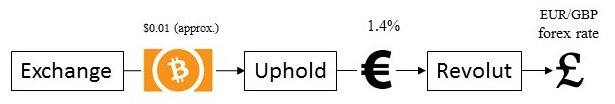 Step 4 (assuming my Revolut account is cleared) - I will send the EUR from Uphold to Revolut and convert to GBP within Revolut for whatever fee they charge. Then I can either forward it onto my UK bank account, but with Revolut having standard banking facilities (once you have ordered one of their bank cards) why should I? I may as well keep it in Revolut and use from there. I can always send some to my UK bank should I encounter any problems with Revolut with the understanding that a deposit will be accepted (no guarantee, obviously).