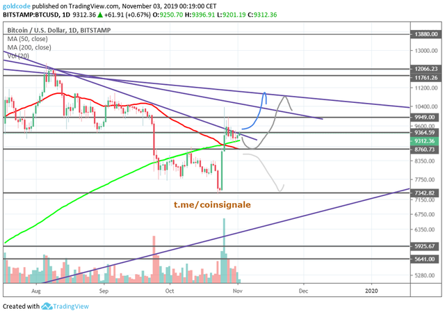 Alternativ wäre eine kleinere Konsolidierung bis 8760 USD zu erwarten, um dann durchzustarten.