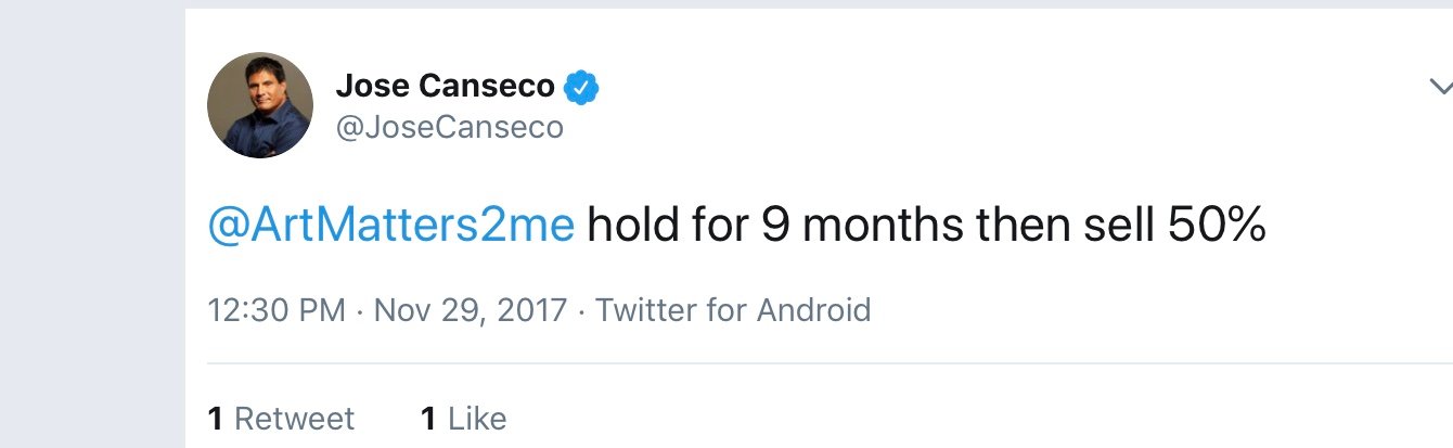A year ago, Jose Canseco, former professional baseball player, gave me some counsel regarding Bitcoin.