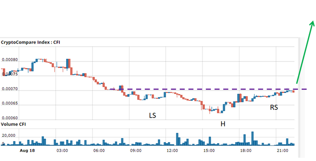 On a shorter term, confirming that a run up is going to take place, any moment, is this Head and Shoulder Bullish Bottom.
