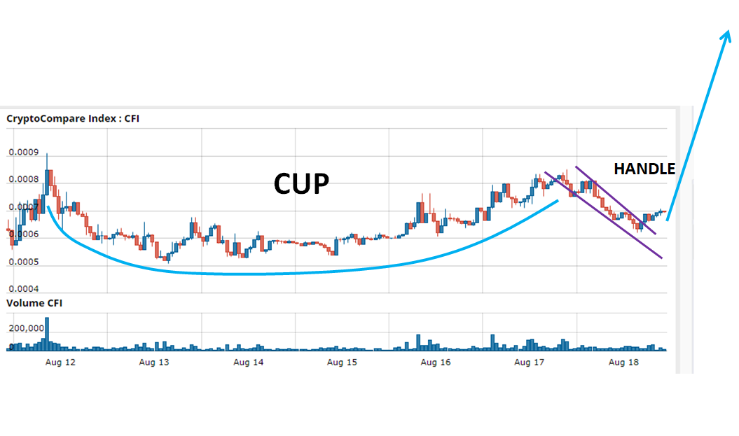 Here is CFI/ETH chart. BEAUTIFUL CUP AND HANDLE BULLISH formation. The handle broke out of the channel and about to makea run up!