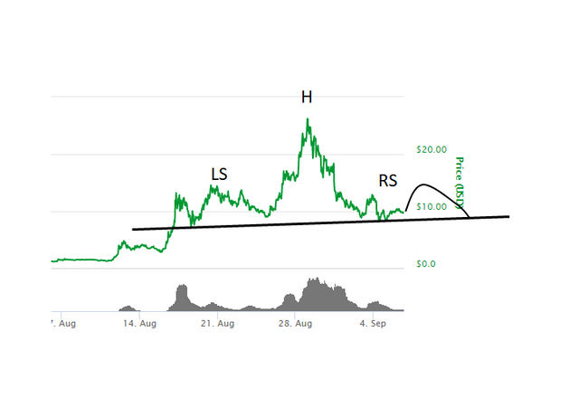 Some might ask if there is a Head & Shoulders Top Bearish pattern. As of now, I wouldn't call it that as symmetry is key. If the two halves of the pattern look very different, then usually I ignore it and that's the case now. However, if prices rise and fall as drawn out in black, that would then give good symmetry and the H&S Top would be valid. But, not yet and thus it's not being considered as primary.