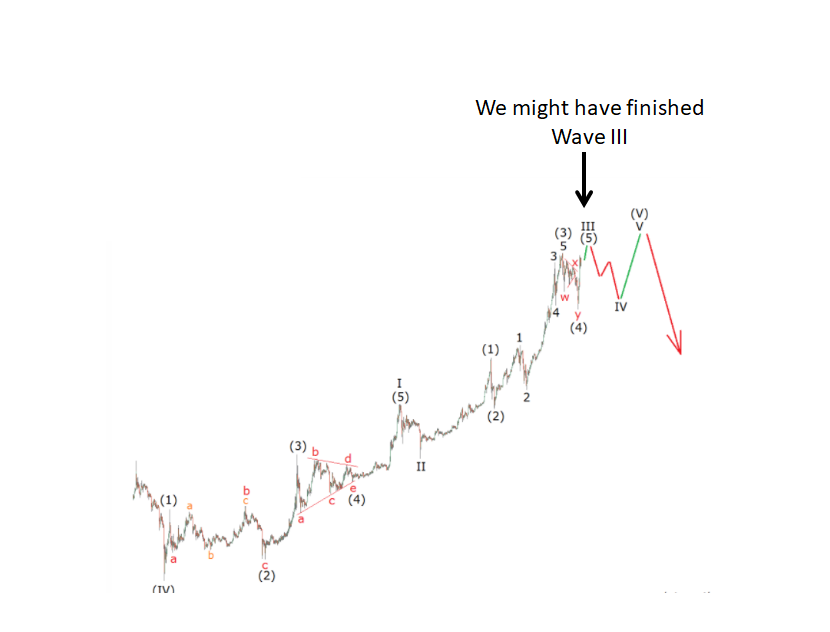 On a longer term, here is the Elliot Wave count I use as base guide. We have either completed or close to completing Wave III and so a Wave IV sizable correction is due as shown in chart below. My abc correction is an attempt at defining the pathway for Wave IV. Once this is in, the Wave V to perhaps $7,000 or higher.