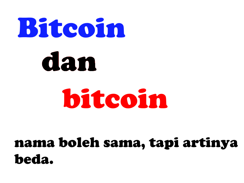 kalau mengenai bitcoin dan Bitcoin, agak panjang penjelasannya. Untuk gampangnya kalau bitcoin pakai huruf b kecil berarti yang dibicarakan adalah mata uangnya. Kalau yang dibahas Bitcoin pakai B besar artinya yang dibahas adalah sistem blockchain Bitcoinnya.