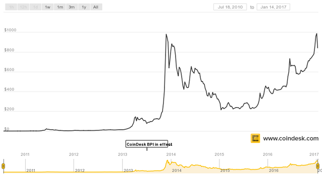 Everyone I know seems to be in a state of depression post meteoric rise and collapse of the Bitcoin price. Frankly I don't know what everyone is depressed about. As I check the Coindesk price while writing this we are back to a price of $831 which was approximately the price on December 22, 2016.