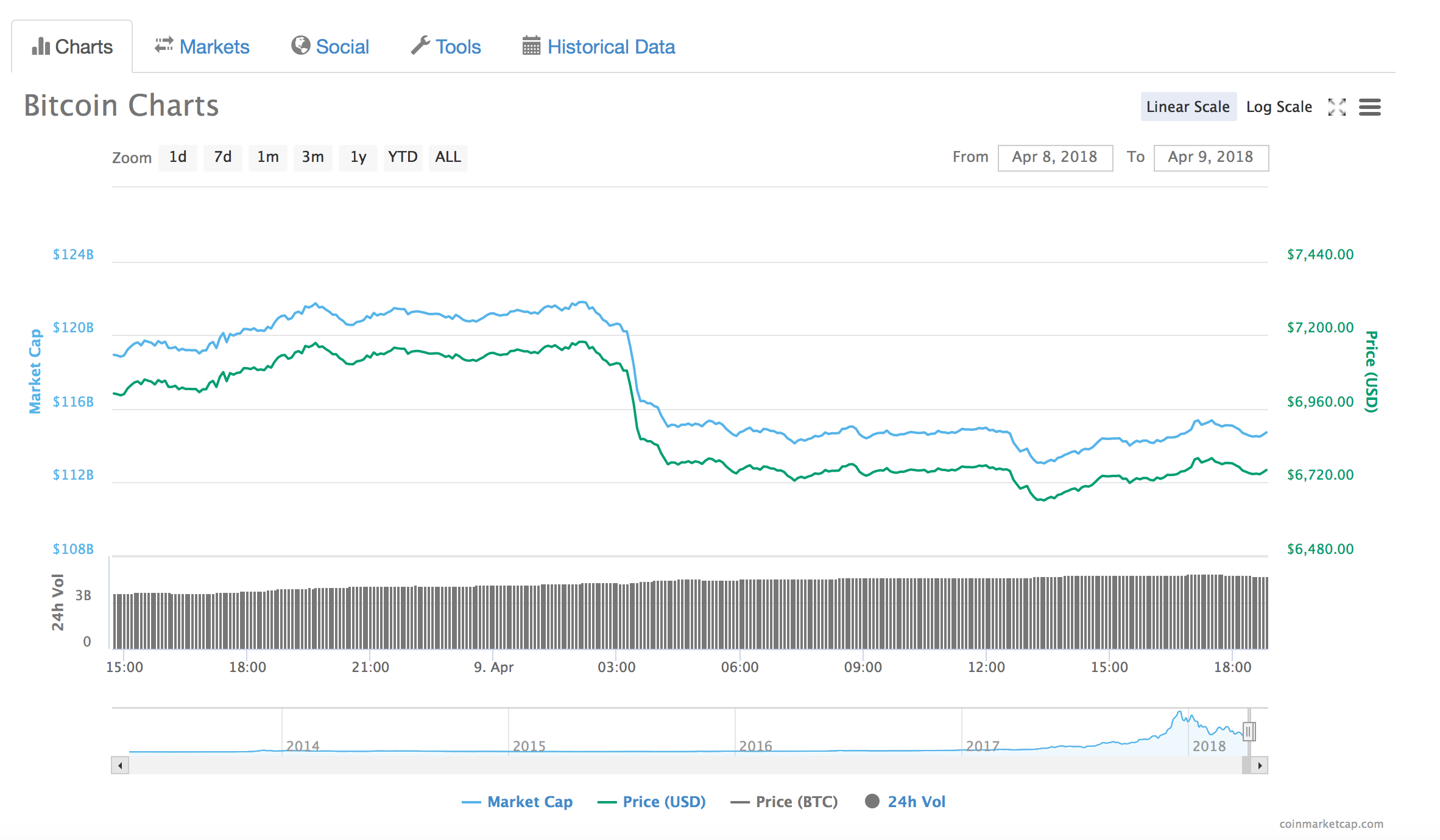 On April 9, the bitcoin cost recorded a minor drop from $7,100 to $6,700, by around 4 percent. The $400 drop in the bitcoin cost was not expected by speculators.