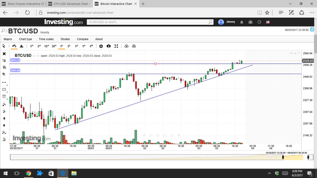 Bitcoin is treading very well today. Its opens at $2475 which is also yesterdays high. I recommend buying this script in my last yesterday post(https://steemit.com/bitcoin/@jimmyrai28/bitcoin-update-02-06-2017-support-tested) and those have bought must be in decent profits.