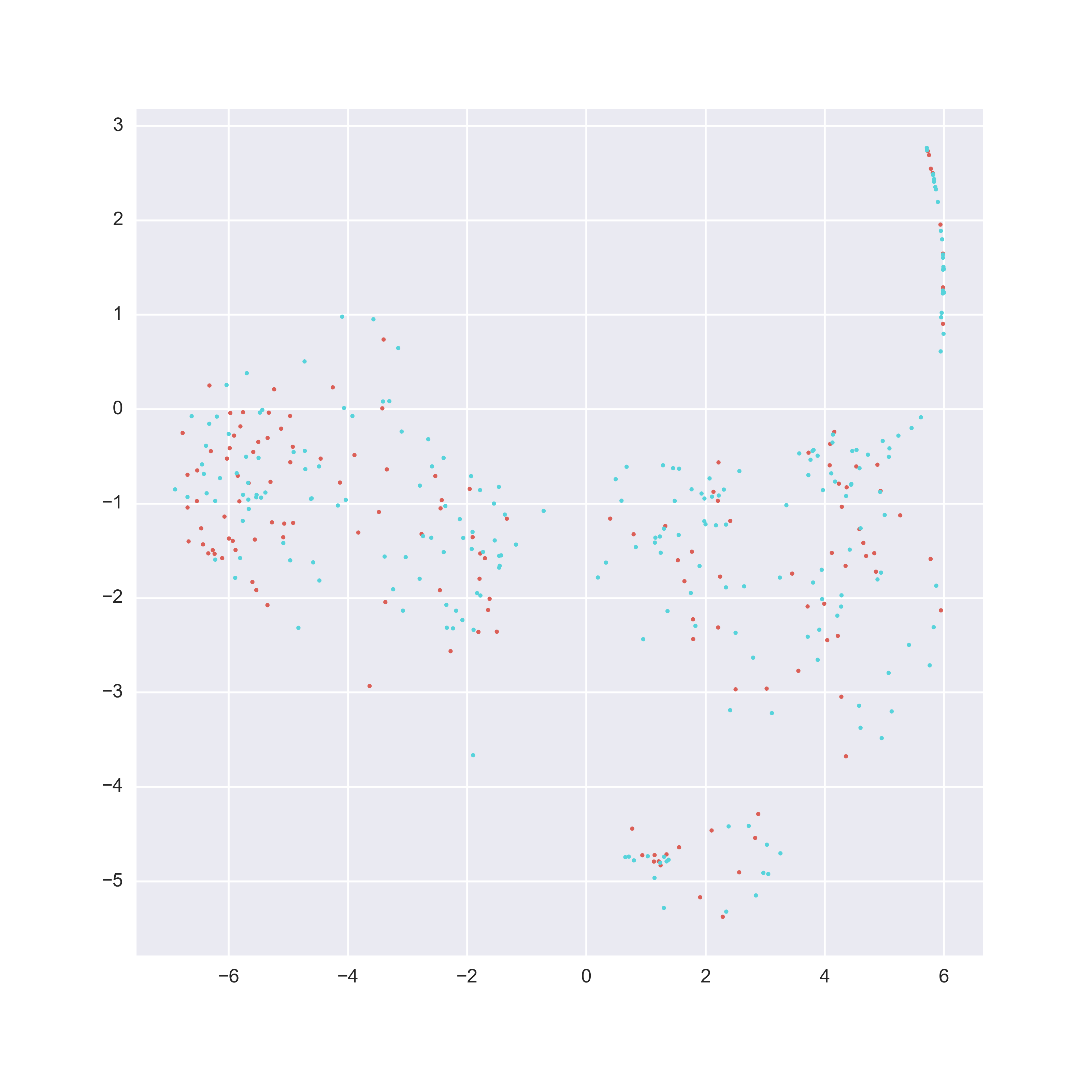 This is much better. Two blue clusters and a red cluster.