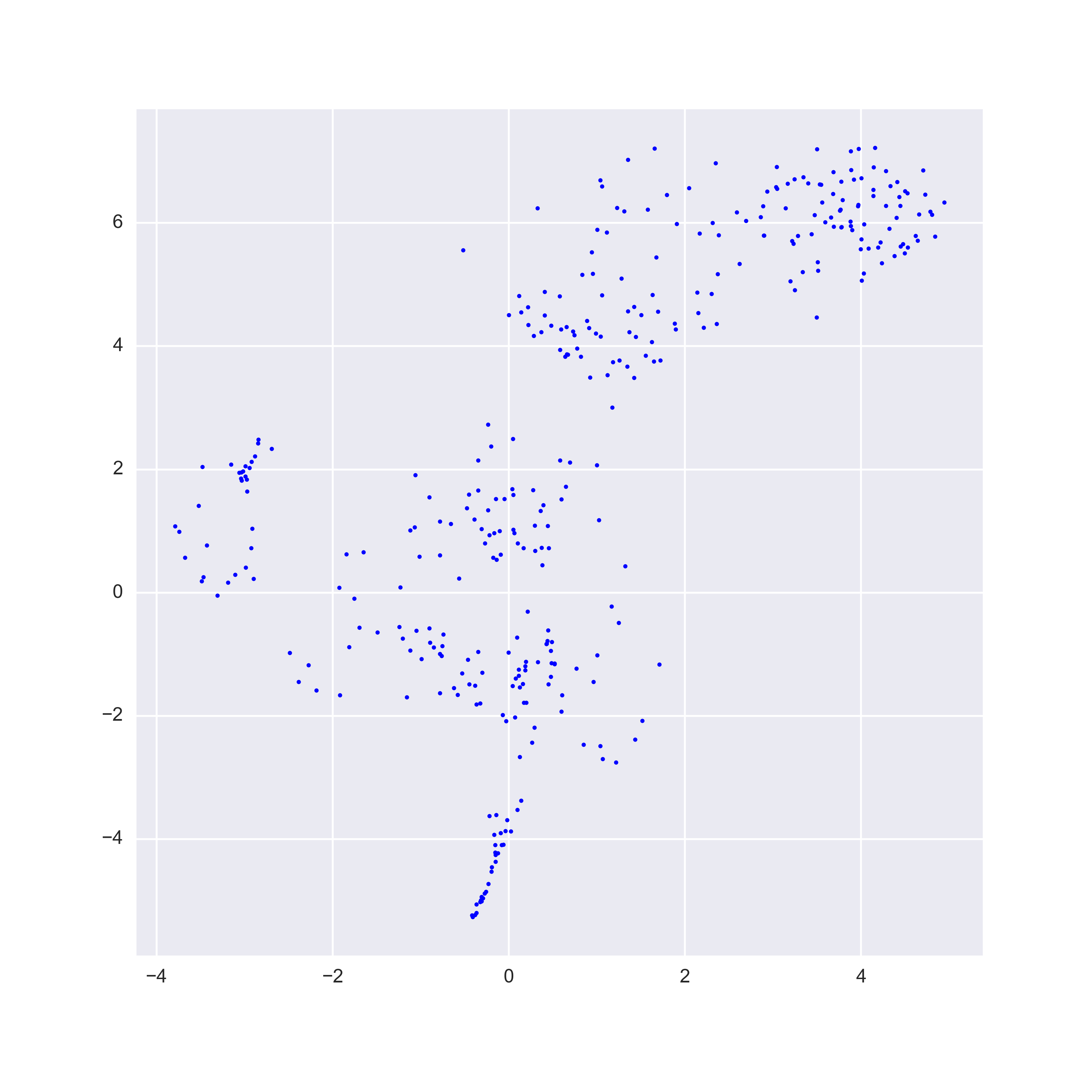The model I apply is known as T-SNE, or t-distributed stochastic neighbour embedding. In simple word, the model will try to squeeze the high dimensional data (the 17 features) into a low dimensional structure (for example, to only 2 features). Such that we can visualize the date on a 2-D graph. In other word, data-point with similar characteristic, which we do not know what it is for now, will group together in the graph.