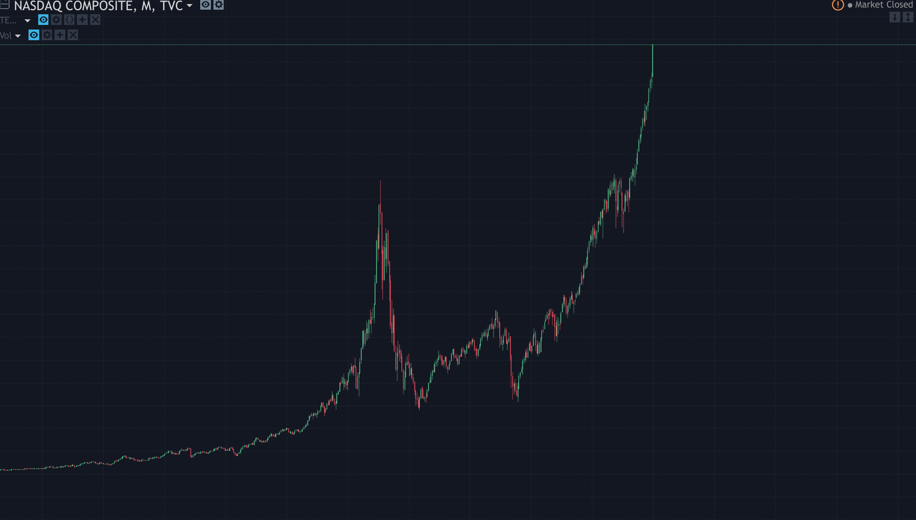I find it funny how the media focuses so much on the #btcbubble when tech is clearly in a bubble as a whole... 2000 all over again. This is the #nasdaqcomposite monthly price
