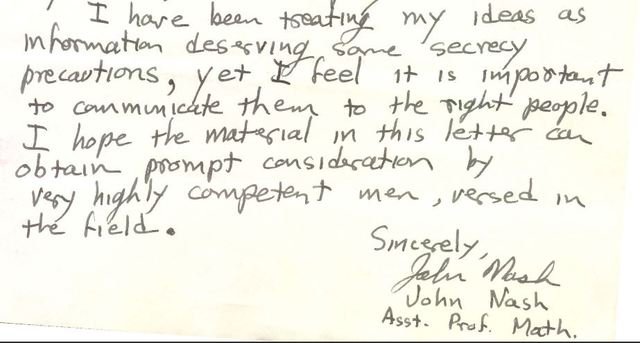 Let us examine a few lines from the scrawling manner Nash used to communicate his ideas to the worlds leading intelligence and research agencies.
