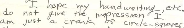 A circle squarer refers to someone that is trying to solve an unsolvable problem, and this is where this correspondence starts to get interesting. At the time it might not have been understood that Nash was a genius (see this declaration on his letter of recommendation on pg. 5 here, but if we can assume the truth of such a claim we should really note that Nash is admittedly affirming that he is presenting an unbelievable truth. He wants the reader to consider the validity of an otherwise unpalatable claim.