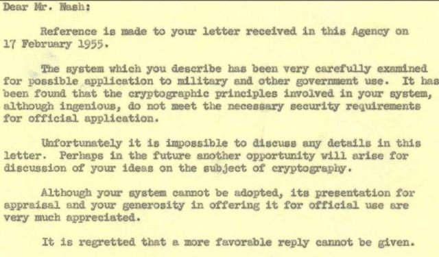 Dear Mr. Nash: 'Your System, Although Admittedly Ingenious, Isn't Ingenious, We Won't Be Using it, And We Cannot Discuss it'