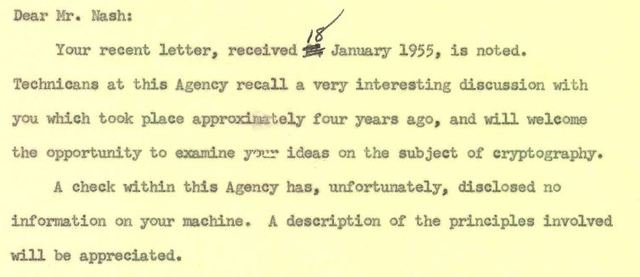 This is where it seems to me Nash is playing with the authorities. He knows, whether his conjecture is seen as significant or not, for obvious security reasons he won't get much of a reply. In informal language he admits he expects and hopes to get confirmation that the content of his letters were considered. This is critical in relation to one of the paragraphs we covered from above: