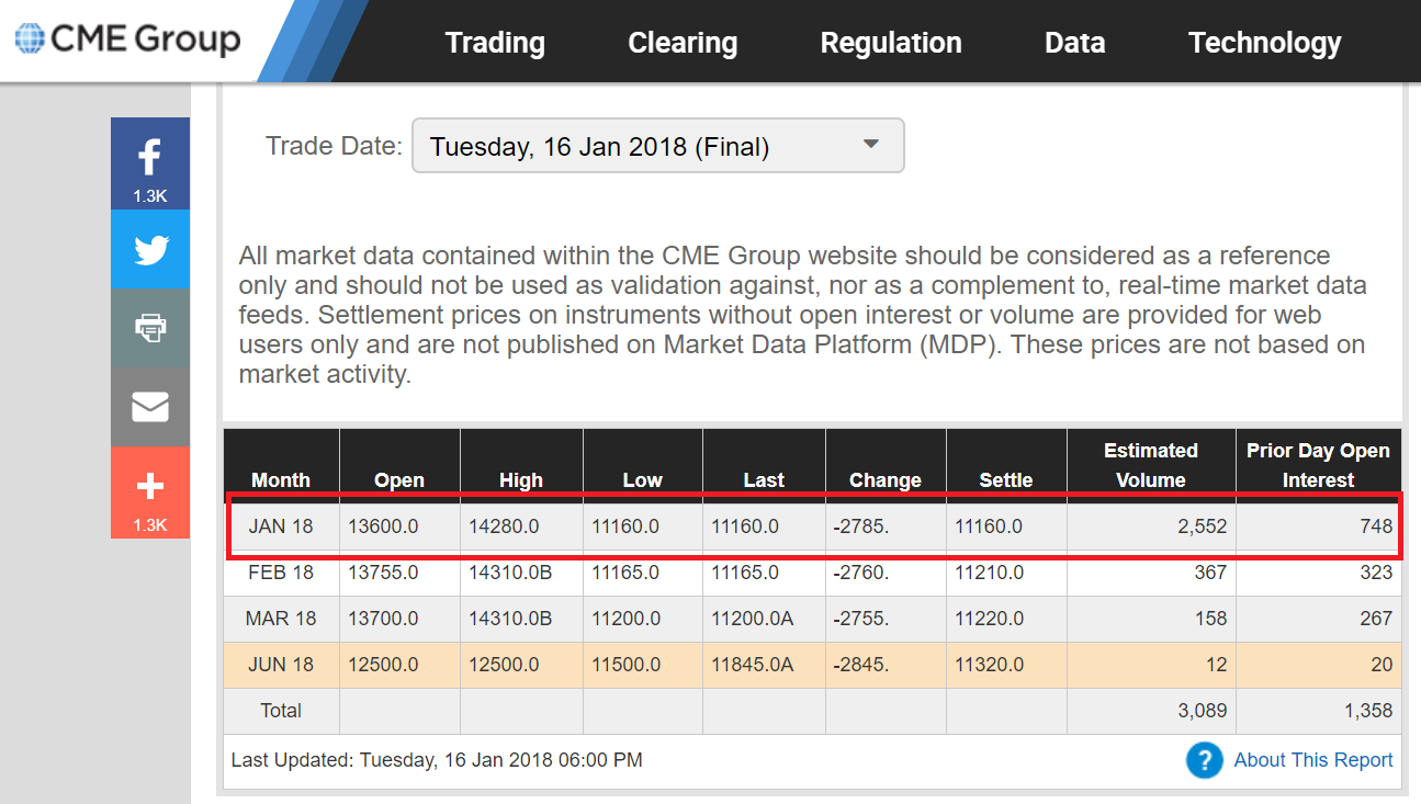 One reason? CME futures contracts settled for the first time on January 17th. 2018: