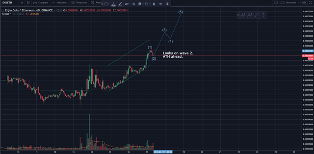 ENJ (Enjin coin) ENJETH chart and wave count, ATH aheadsteemCreated with Sketch.larryc (27)in #bitcoin • 8 years ago (edited)Here is the ENJETH chart on binance.com. With android wallet out and good feedback, iOS Wallet scheduled to be released in Q1, and major partnerships and more listing on major exchange. ATH is not a surprise to me. I will be surprised if not. #altercoin #enj #enjin #cryptocurrency