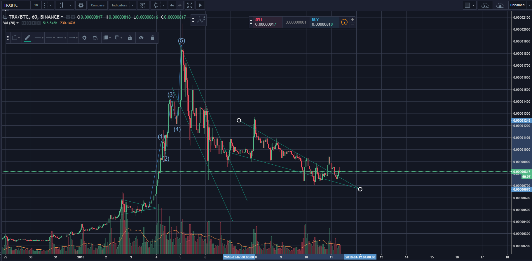 Here is the latest chart for TRON (TRXBTC) on binance: