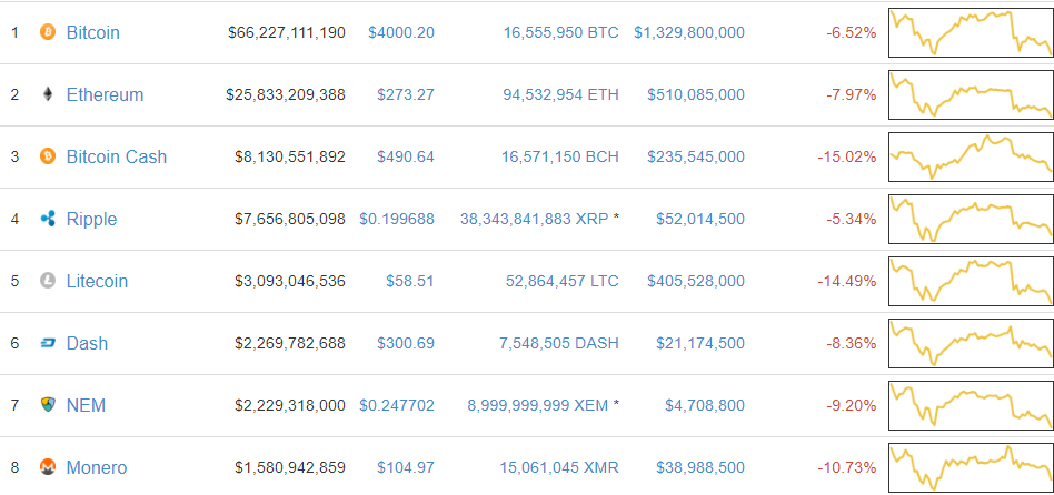 Litecoin is considered to be one of the most stable coins in the market. But because of the Chinese ban effect, even LTC has been affected. In the last 24 hours, the volume traded of LTC was 12.05% which is $414'353'285.7195 ($414 Million). Highest trade volume occurring in OkCoin.cn. ($106,331,000). The current value of LTC is $57.24 and it's market cap is $3,025,960,984. Down by (-16.52%).