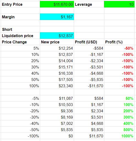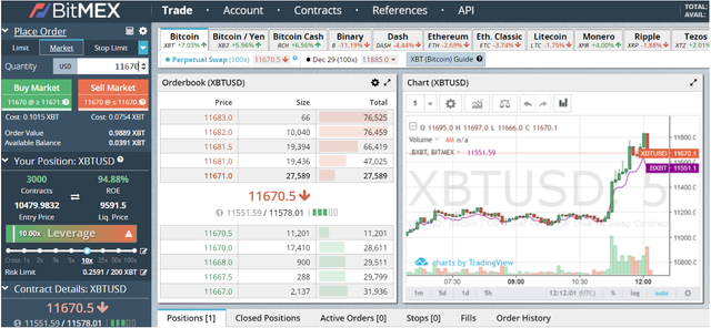 Set-up to buy 1 Bitcoin ($11,670) with 0.1 BTC Margin i.e. 10x Leverage Long