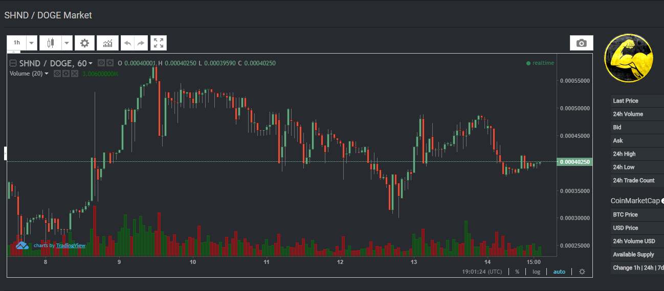 그런데 SHND 코인 1개의 가격은.... 0.0004 DOGE