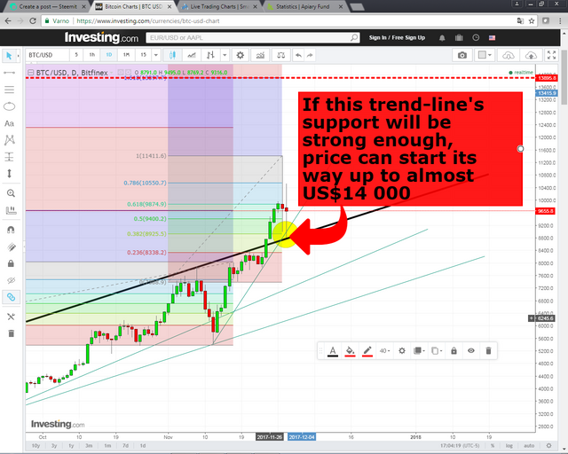 Is this trendline support?moritzaa (38)in #bitcoin • 8 years ago Maybe this trend-line is already the support from which bitcoin will start its way up to US$ 14 000 level. Wait and see...! #chart #price #move