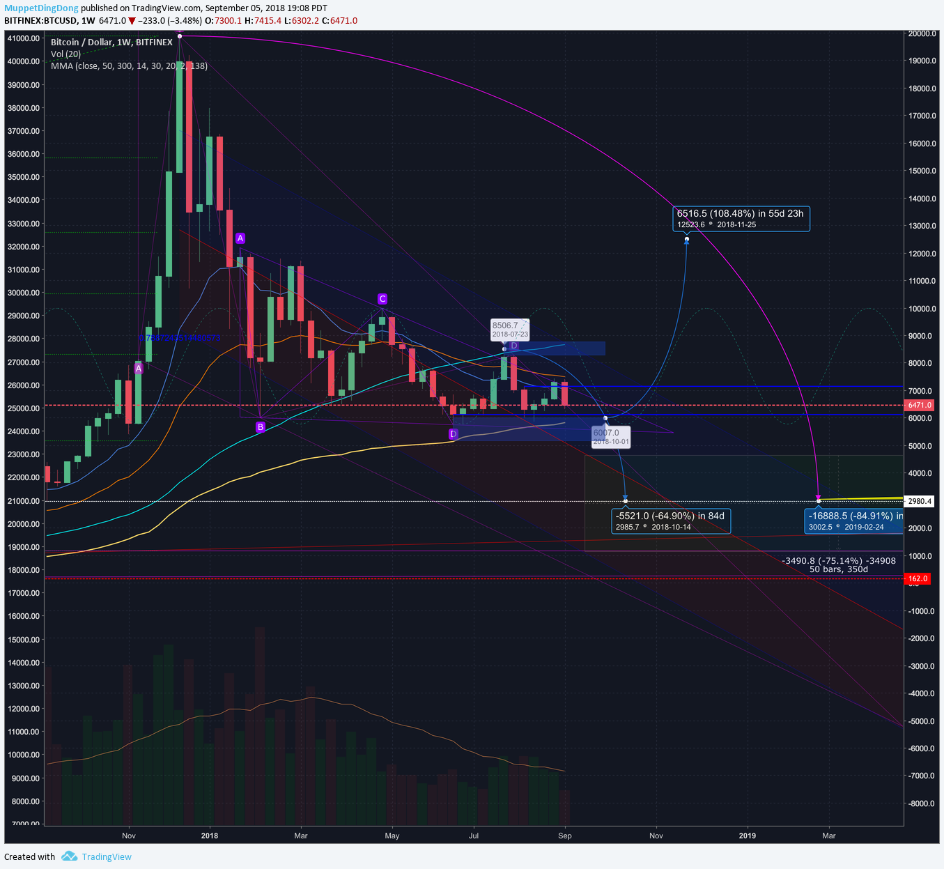 - The more times a support / resistance line gets hit, the WEAKER it becomes, so that ~$5800-6000 level if hit again may not hold, that would be the 4th major support test while we keep hitting lower highs.