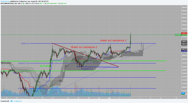 Techinical Analysis Update Bitcoin - BTCUSD - 8/4/17
