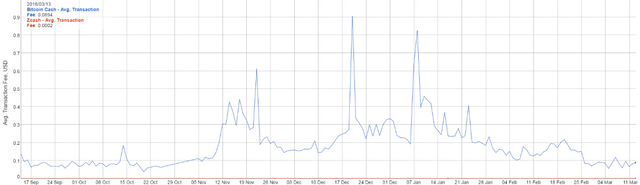 Figure 10 Bitcoin Cash v Zcash average transaction fee.