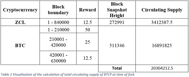 The addition of the two UTXO sets of ZCL and BTC drastically accelerated inflation of BTCP. The values yielded from Table 2 show that at time of fork the initial circulating supply of Bitcoin Private was 20,304,212.5 BTCP, leaving a possible 695,787 BTCP to be mined. To compensate for the limited remaining supply of BTCP to mine and to incentivise miners to secure the network, the development team and community elected to reduce the block reward to 1.5625 BTCP per block with a block reward halving every 210,000 blocks (~1 year), making it a very low inflating cryptocurrency.
