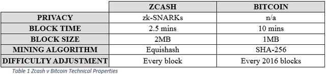 Due to the open-source nature of cryptoassets, there is nothing stopping a team of developers from seamlessly taking the code base of a particular blockchain project and adding, editing or removing any code features to produce their own blockchain. This is what is known as hard forking, a process whereby the forked blockchain is similar to the original but there are some fundamental differences to the code that make them incompatible. It should be noted that Zcash is an open-source project forked off the Bitcoin codebase, amending the code to include features that differ from Bitcoin which are displayed in Table 1.