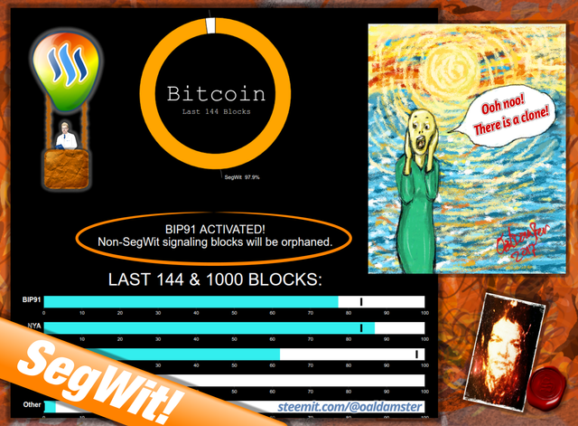 Would the cryptos market risk this to happen? Would the Bitcoin realm majority let a roque client take over? Or is it even logical to see this as a realistic scenario? Well, I hope I was already able to give you the answer to this. Nothing can have a guarantee, but it seems extremely likely that the Bitcoin Blockchain Split Attacking clone will fail big time. Otherwise it would have already have gotten massive support in mining power before BIP 91 started signalling for SegWit. And that one got locked in fast! Just look at the XBT dot EU website that gives you a nice update on how SegWit activation is moving forward. And it looks like the clone is about to go into oblivion, where I think it already went, because it is not getting backed by real serious mining power. And august the first will just be game, set and match for SegWit, for Bitcoin and for the whole realm of cryptos.