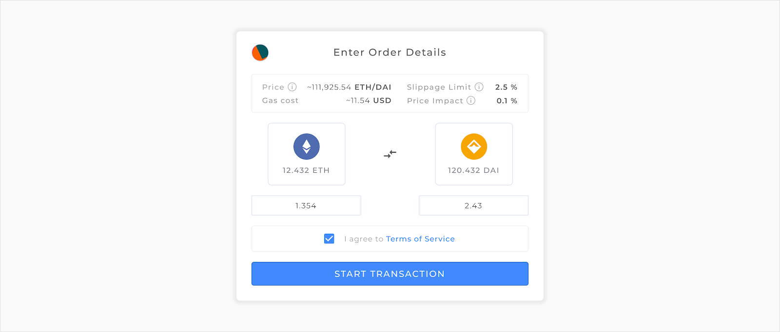 We’ve updated the interface so that quote currencies are consistently displayed throughout the application, regardless of whether you sell or buy a token. DAI is the default quote currency, with ETH as second option for non-DAI pairs.