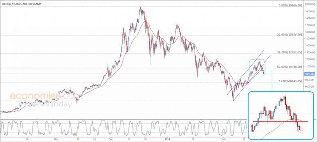 Bitcoin has been trading out of the channel that we drew recently, the bottom line of the channel was at 11000 level, and after we break also the 50 Moving average and it stabilizes below it.