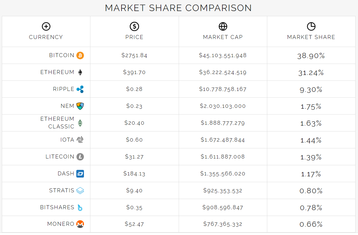 Coinmarketcap only shows the dominance of Bitcoin but this site shows market share of each cryptocurrency in the market. In this respect, it has a simple and usable design.