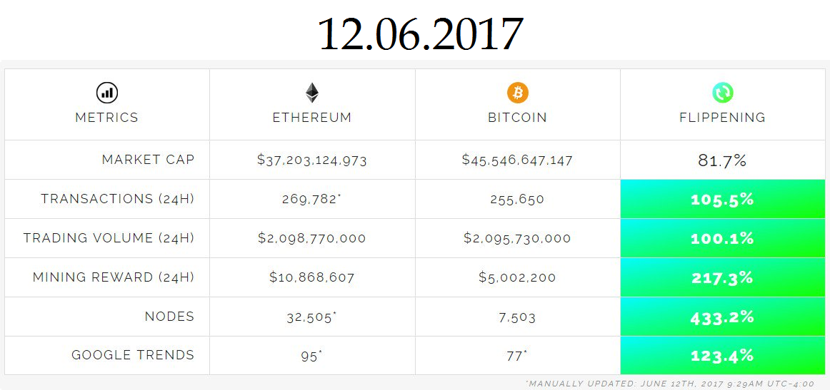 12 Haziran'da flippening göstergelerinin çoğu yeşildi.