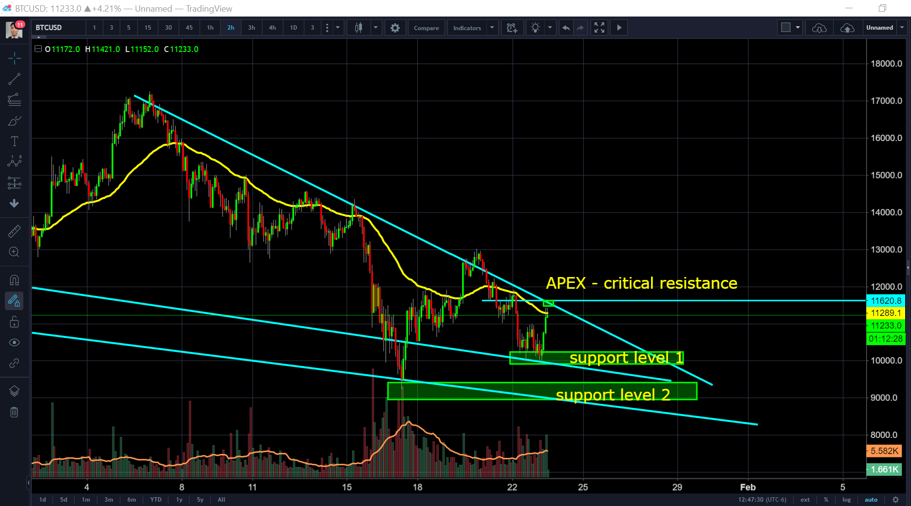 A key break to me for confirmation is $11,700 with large volume and confirmation of a parabolic move up. Otherwise we will see support levels retested.