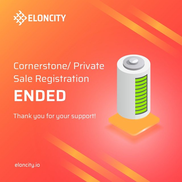 “ELONCITY’s Cornerstone/Private Sale Registration has ended. ELONCITY is still successfully financing in the bear market. We greatly appreciate everyone’s participation! Participation details of public token contribution will be announced soon. #ELONCITY #blockchain #ECT”