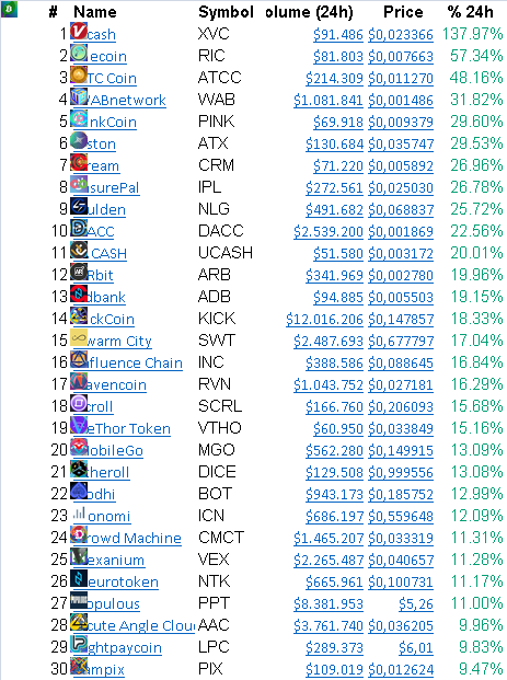 Top 30 rising in the last 24 Hours