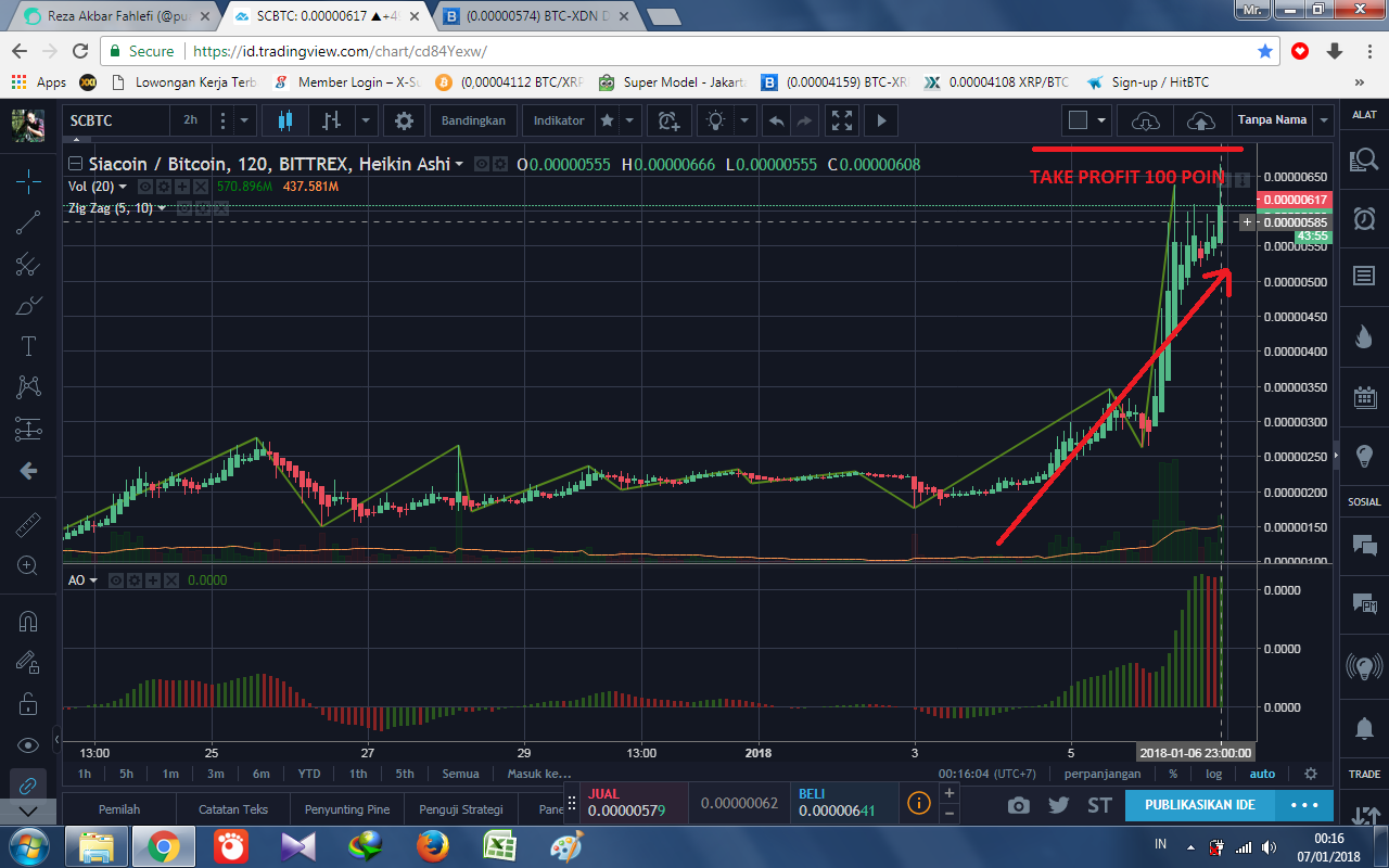 TRADE SESSION 10 | Siacoin - BITCOIN | TAKE PROFIT 100 POINTS ,Update 07.01.2018 Explode Profit!!