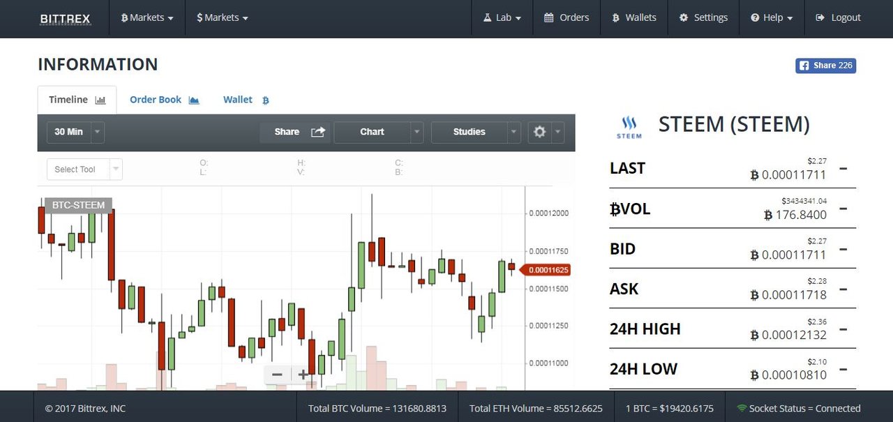 I mentioned in brackets that Steem is not listed on Binance. Bittrex it is listed.