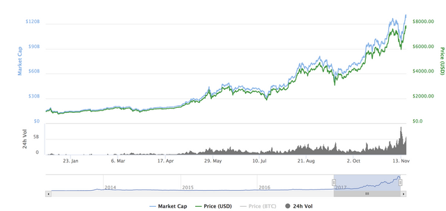 At a time when we're seeing just how much power is abused... I think the world is ready for a currency that is decentralized and controlled by the people. Bitcoin has broken the $8,000 barrier for the first time! However There is speculation that it could surpass the 10,000 mark.